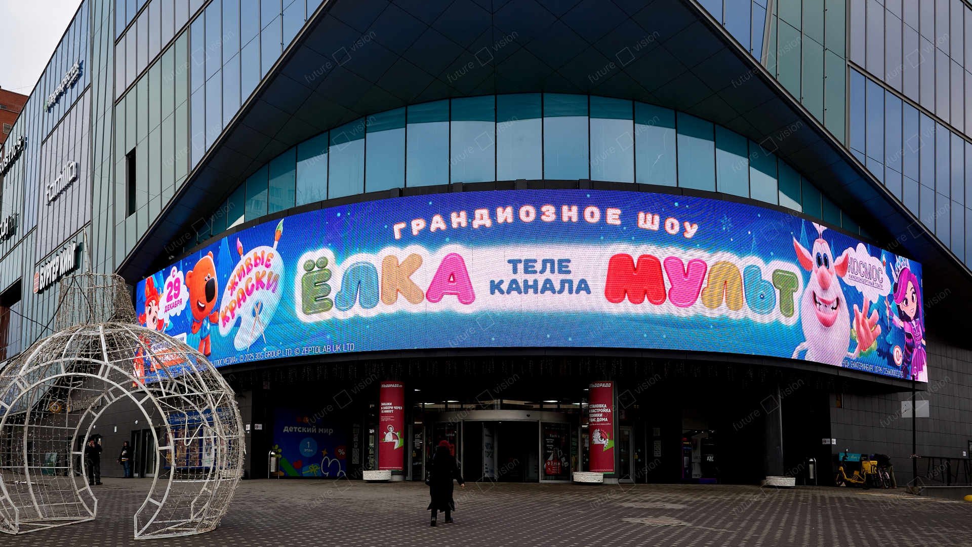 Входная группа торгового центра играет ключевую роль в формировании первого впечатления у покупателей. Именно это место является своеобразным лицом торговой точки, с которого начинается коммуникация. Светодиодные медиафасады, установленные перед входом в торговый центр, способны вызвать вау-эффект, привлечь больше покупателей и повысить конкурентоспособность. Помимо повышения лояльности к бренду ТЦ, LED экраны также являются эффективным рекламным инструментом — запущенный динамичный контент будет виден издалека как пешеходам, так и водителям вблизи торговой точки. Рекламные предложения не останутся незамеченными!